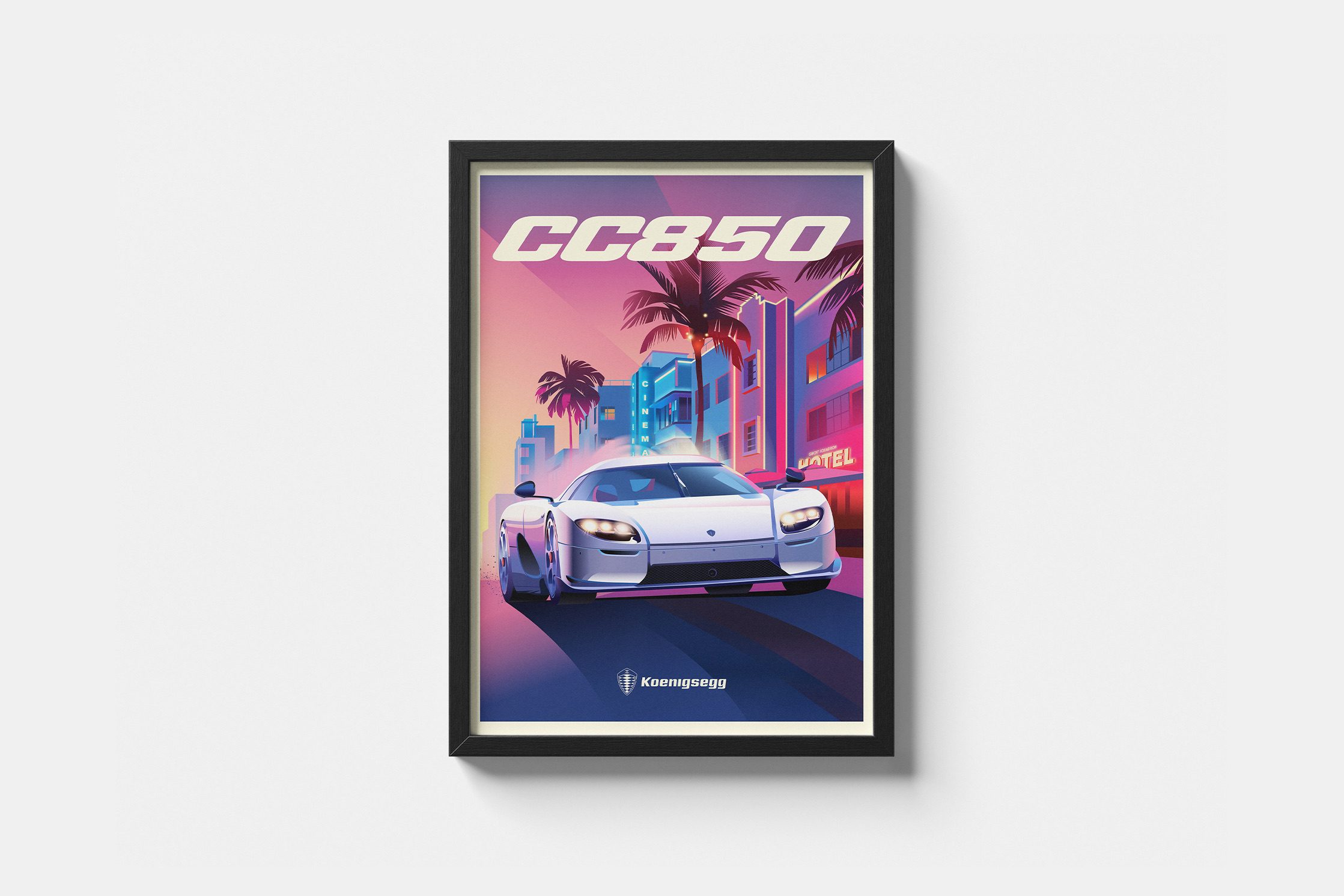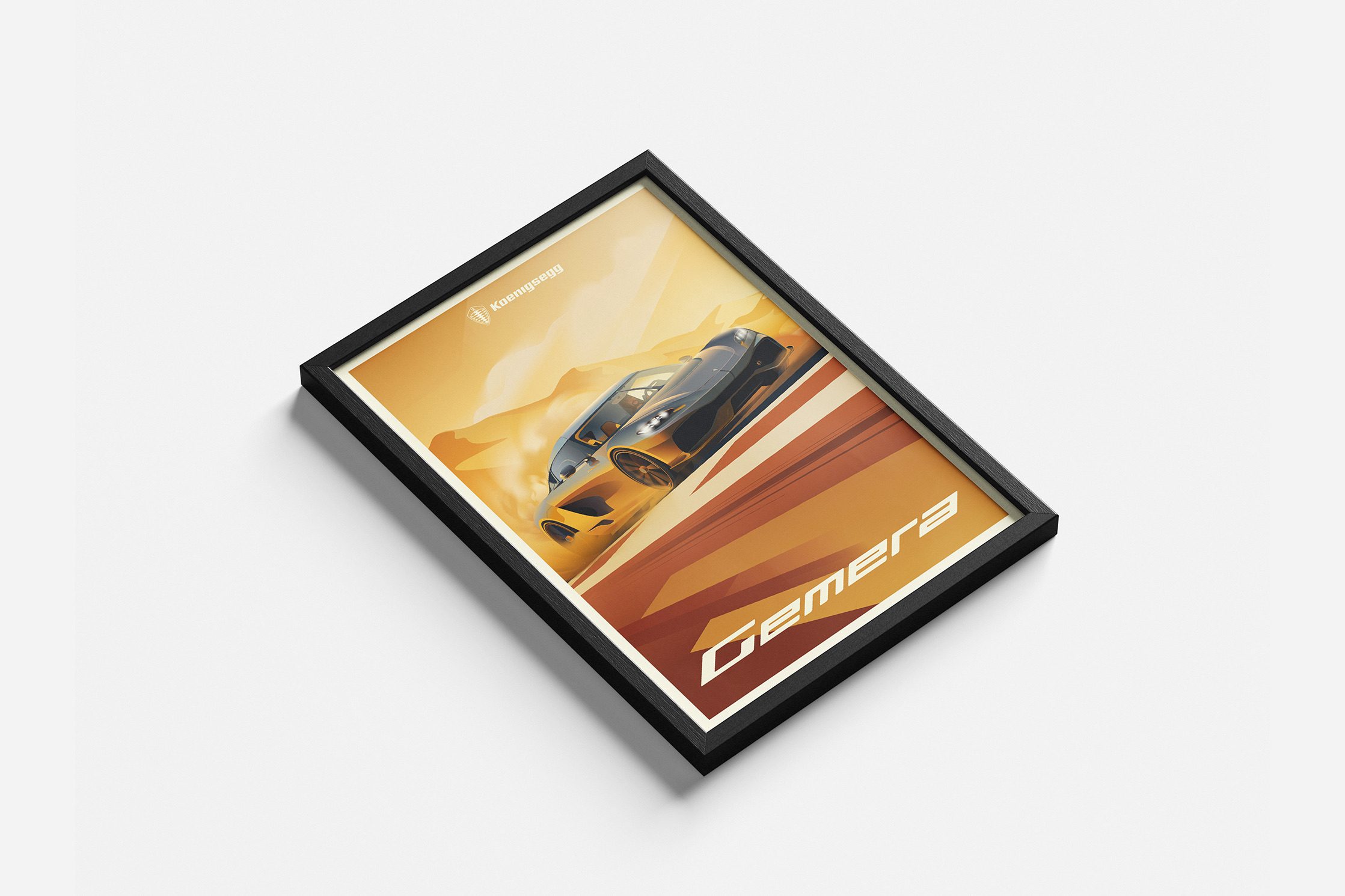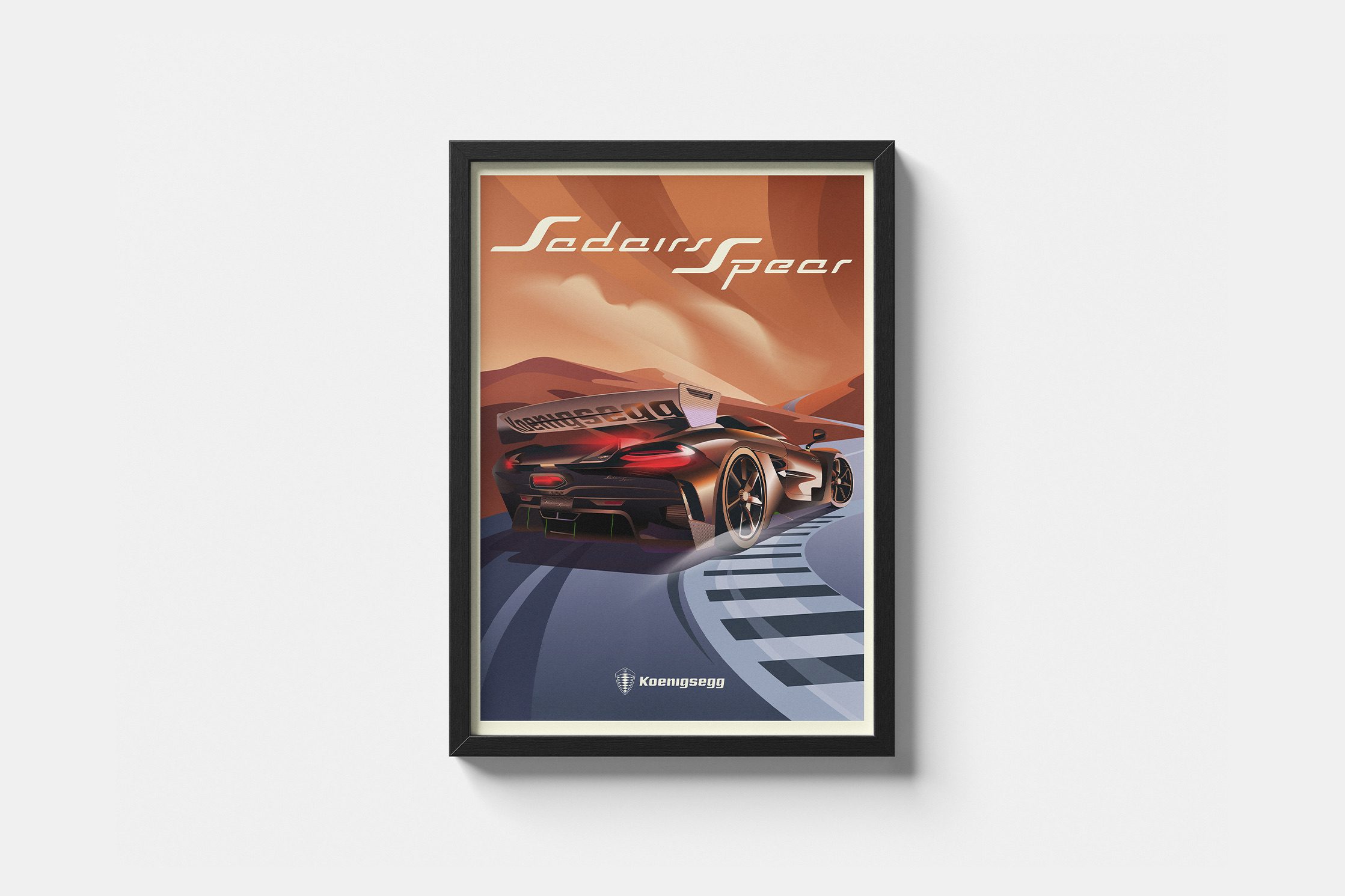 The “Gemera Desert” poster is part of the Koenigsegg Art Deco Collection by Ferdasco – a series celebrating design, speed, and innovation through a vibrant, retro-futuristic art direction.