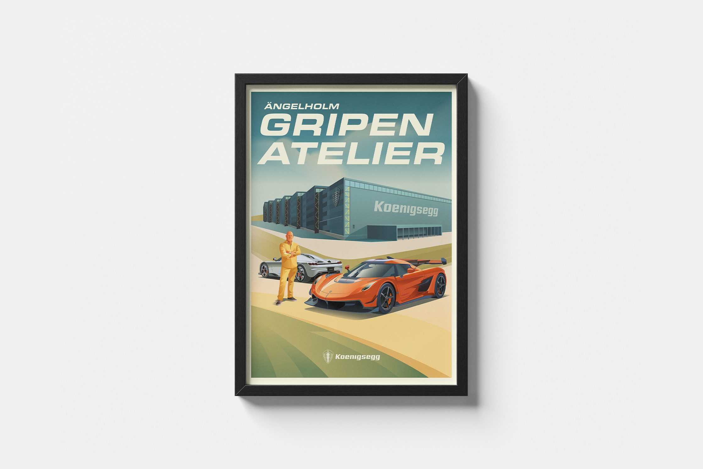 Experience the fusion of Swedish engineering excellence and timeless Art Deco aesthetics. Each design in this exclusive collection is limited to only 100 prints, individually hand-stamped and numbered on the reverse side to verify authenticity. 10 of each design will be signed by Christian von Koenigsegg.